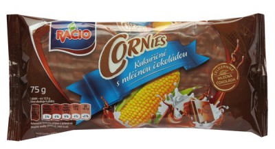RACIO Cornies s mléčnou čokoládou koupíte v běžné obchodní síti a na www.bio-natural.cz, 75 g za 21,30 Kč.